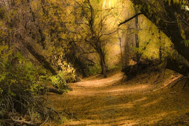 No sounds but the rhythmic motion of my feet as they crunch through drying yellow and burnt orange.